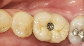 Rehabilitación sobre implante diente 4.6 corona atornillada.
